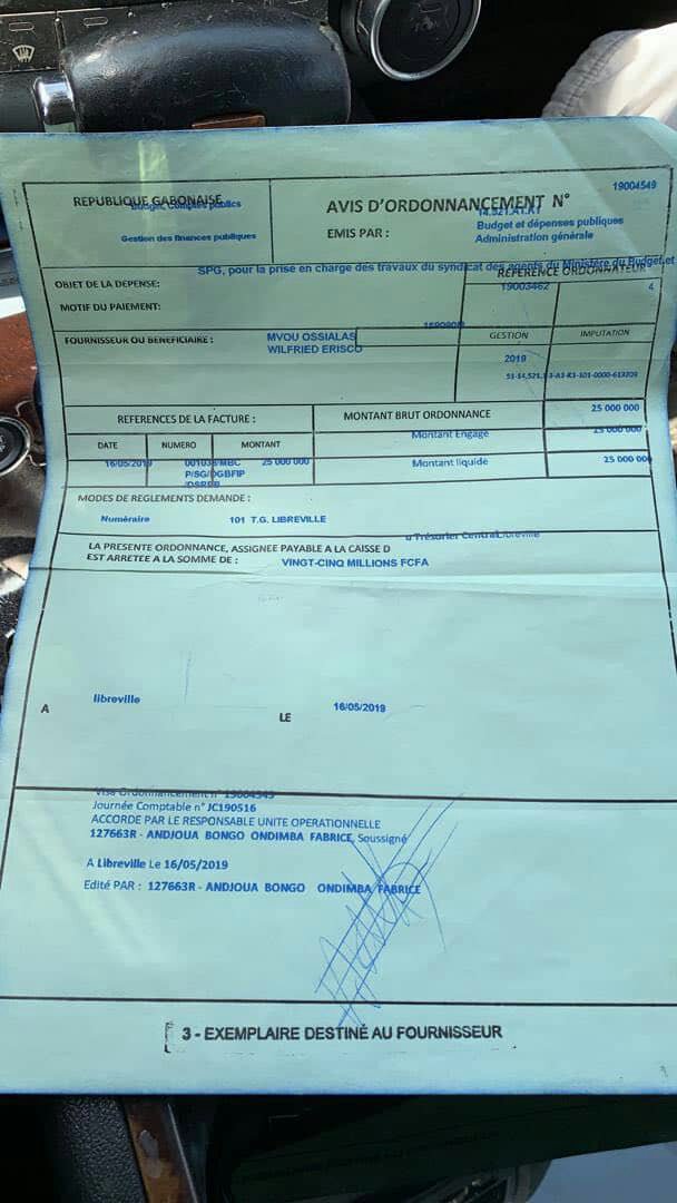 Depuis ce matin 20 mai 2019 la copie d’un document faisant foi d’une preuve irréfutable, de corruption au sommet de l’administration des régies financières circule dans les réseaux sociaux et autres plantes formes de communication.