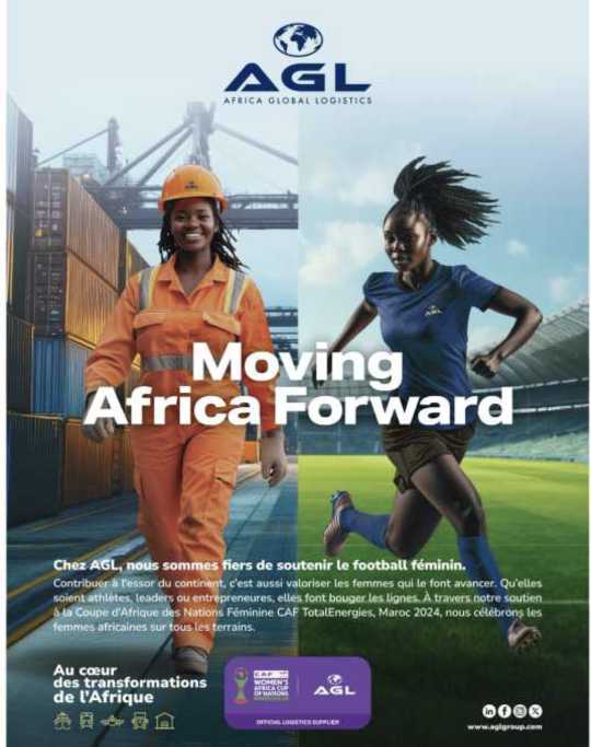 Dans le cadre de son partenariat stratégique avec la Confédération Africaine de Football (CAF), Africa Global Logistics (AGL), acteur majeur de la logistique sur le continent, lance sa campagne « Moving Africa Forward » à l’occasion de la CAN Féminine qui se tient au Maroc du 5 au 26 juillet prochain.