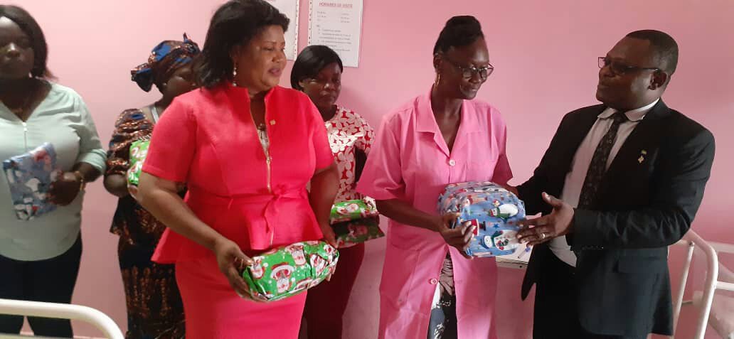 Ce mardi 24 décembre 2019 restera un jour inoubliable pour plusieurs enfants du quatrième arrondissement de la commune de port-gentil qui ont reçu leurs jouets des mains du premier citoyen de l’arrondissement Jean Louis Moukagna. pour cette année le theme retenu pour cette fête de la nativité est: « une agreable fête de Noël pour tous au quatrieme arrondissement » la première depuis son élection à la tête de cette institution, M le maire Jean louis Moukagna, qu’accompagnait son premier adjoint Mme le maire Angela Malla-Ma-Mbading, son cabinet, et une délégation composée du personel de la mairie dont il a la charge de diriger, se sont, rendus tour à tour au centre hospitalier regional de port-gentil (Ntchengué), plus precisement au service de maternité et de la pédiatrie, suivi par l’étape du CTA, et pour terminer à l’orphelina catholique de Ntchengué. Un seul but animait cette équipe, municipale (que la fete de Noël soit belle pour tous) comme le dit le thème.