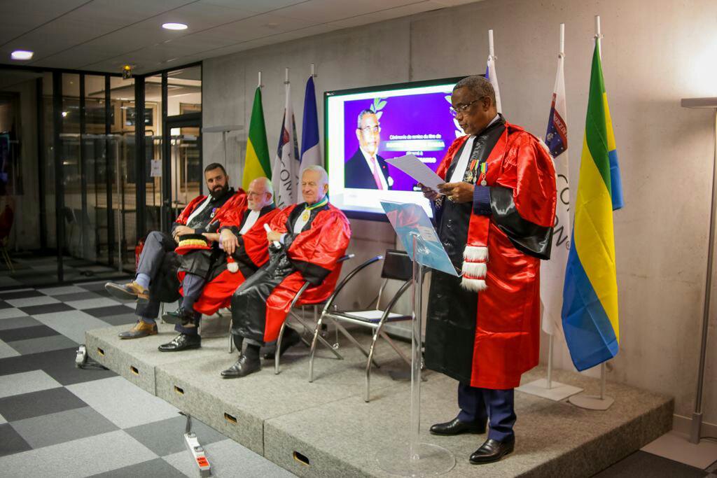 C’est en présence D’Hervé Diaz le président du groupe école de commerce de Lyon, qui a présidé la cérémonie, de plusieurs invités, étudiants et certains membres proches de sa famille que, Gabriel Tchango le Maire de la commune de Port-Gentil a reçu le 15 Novembre 2019 dernier, en France plus précisément à l’école de commerce de Lyon, la distinction honorifique de Doctor Honoris Causa, prix accordé aux personnes qui marquent positivement l’histoire dans leurs engagements sociaux, économiques et culturels dans le milieux et secteurs qu’ils évoluent.