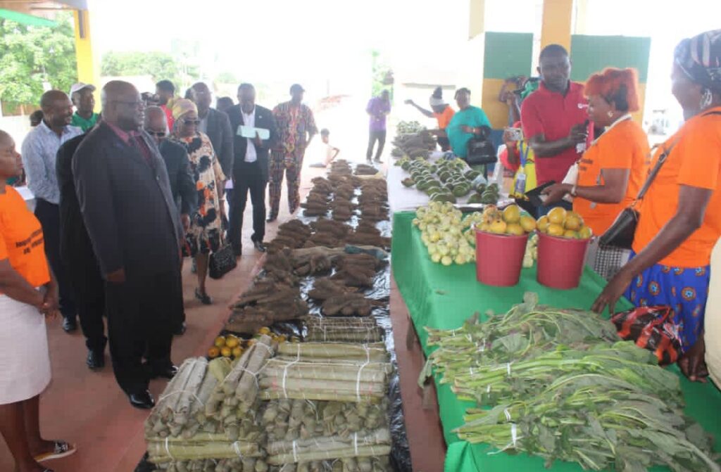 Au total, 16 coopératives ont pris part à cette foire, représentant les villages partenaires de Mboukou, Rembo, Ferra, Iroungou, Nanga, Nyanga-Youngou, et plusieurs coopératives sœurs de la commune de Mouila. Les exposantes ont présenté une grande diversité de produits vivriers locaux, agrumes et PFNL : bananes, manioc, asperges, feuilles de manioc, ananas, mangues, légumes-feuilles, curcuma, patates douces, citronniers, pamplemoussiers, etc.
