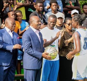 Dans le cadre de sa tournée Républicaine, le numéro 1 gabonais, Ali Bongo Ondimba a été accueilli par le comité de l’association God Spirit Basket-ball que dirige Laurel Lemigui dans le 3e arrondissement de Libreville, situé au quartier Likouala.