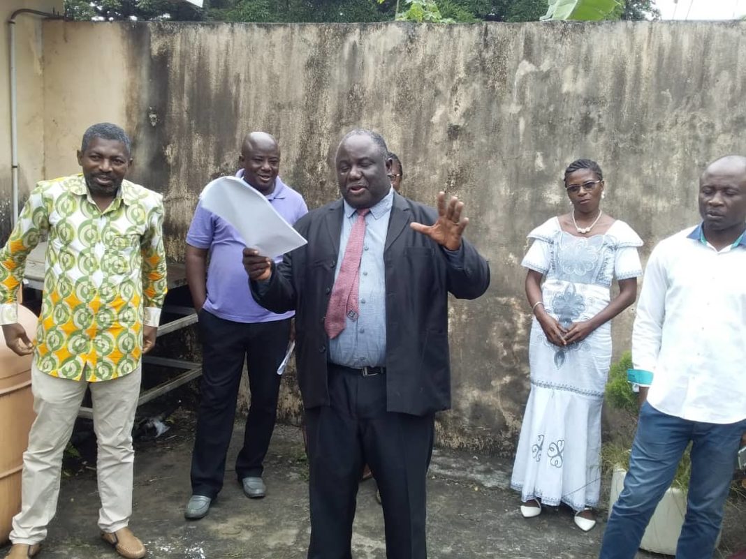 Libreville le vendredi 20 mars 2020.Le siège de la confédération syndicale Dynamique unitaire a servi de cadre dans lequel les syndiqués ont tenu une conférence de presse liée à la pandémie de coronavirus.