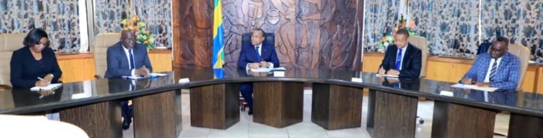Libreville, le 24 mars 2020 dernier – Le Premier ministre, chef du gouvernement, M. Julien Nkoghe Bekale, a dirigé ce jour une réunion avec les représentants de l’Organisation mondiale de la santé (OMS), Dr Magaran Monzon Bagayoko, de la Banque africaine de développement (BAD), M. Robert Masumbuko, du coordonnateur résident du Système des Nations Unies, M. Vincenzo Fazzino, par ailleurs, chef de bureau et représentant de l’UNESCO au Gabon, et l’économiste auprès de la Banque mondiale, Mme Sonia Ondo Ndong, représentant Mme Alice Ouedraogo.