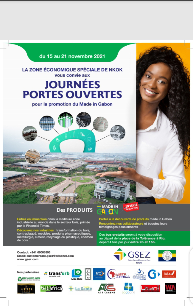 Libreville le 03 novembre 2021 GLOBE INFOS (G.I). C’est désireux de mieux se faire connaître par la population locale et faire valoir ses activités et produits fabriqués, que les dirigeants de la Zone Économique Spéciale du Gabon (GSEZ) SA organise du 15 au 21 du mois courant, des journées portes ouvertes dans son site de Nkok situé à 27 km de Libreville la capitale Gabonaise.
