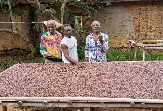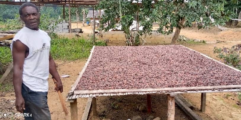Monsieur EYEGUEZOK Emmanuel, planteur actif sur 1,5 hectares au village Assok, se dit satisfait de l’appui d’ORG qui a eu un impact considérable sur sa production, « Je suis dans l’activité du cacao depuis 18 ans déjà, avant je produisais environ 8 sacs de cacao par saison. La saison après cette formation j’ai produit une demi-tonne de cacao (10 sacs) ».