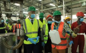 Libreville le 20 juin 2024 Globe Infos. C’est dans le cadre de sa tournée nationale, le Ministre de l’Industrie, accompagné d’une importante délégation, a visité notre raffinerie Olam-Palm à Lambaréné. La visite a couvert plusieurs installations clés, allant de l’unité de contrôle ,du laboratoire d’analyse à l’unité de conditionnement et d’emballage l’entrepôt de stockage ainsi que l’unité de saponification.