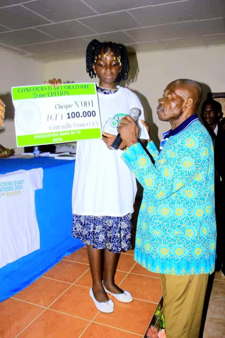 En effet c’est dans l’optique de former une jeunesse consciente et emmener certains d’entre eux à découvrir d’autres talents qui sommeillent en eux que l’association BONG BE YE ADZA et leur parrain ont organisé ce concours qui a permis à ceux-ci de découvrir plusieurs jeunes talentueux en la matière. Mais comme il fallait un vainqueur, Maëva, élève en classe de 4ème a été la plus éloquente de la ville de Mitzic pour l’édition 2023 du Grand Oral. Elle a remporté avec brio le 1er Prix baptisé, Prix Diamant « Noel Angone Eva » pour la promotion de l’Excellence dans le domaine de l’Éducation, des Arts et de la Culture, dans une compétition a vue la participation des élèves toutes catégories confondues.
