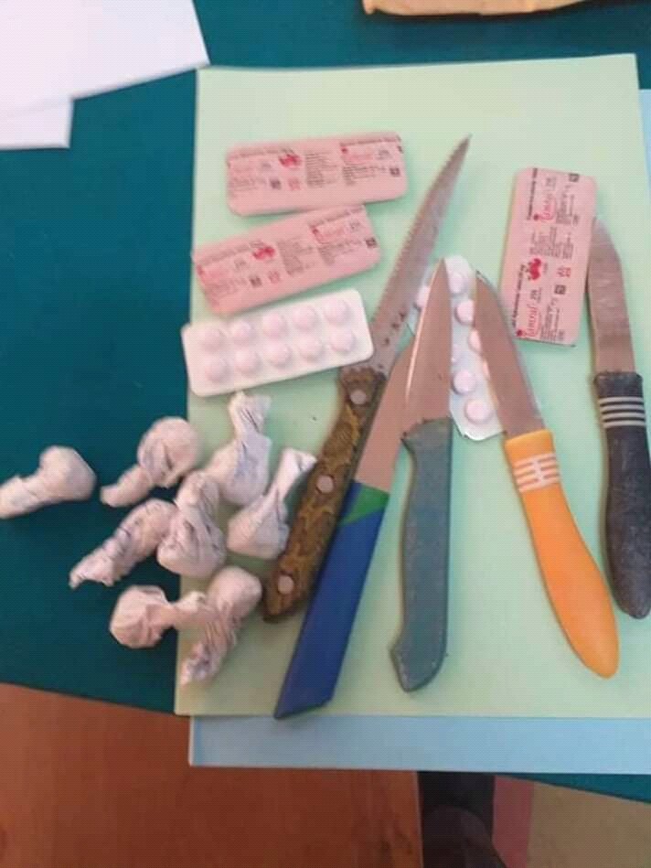 Depuis leurs mises en exécution, le bilan des découvertes est très lourd. Et sur ce point, le C.E.S d’Alenakiri n’est pas une exception car la qualité et quantité d’objets trouvés sur les apprenants de cet établissement de la capitale Gabonaise, commune d’owendo laissent à désirer, et donnent la chair de poule comme on le dit au quartier. Les policiers en charge de la fouille à l’entrée de celui ci ont trouvé( des couteaux, drogues, ciseaux, compacts, alcool, comprimés etc.. .)