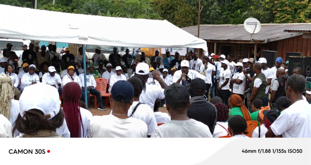 Oyem le 02 Avril 2025. Lalara et Mitzic ont accueilli, ce mercredi 2 avril 2025, la coordination provinciale du Woleu-Ntem, conduite par Sosthène Nguema Nguema, dans le cadre de la campagne électorale en faveur du candidat Brice Clotaire Oligui Nguema. Après une étape réussie dans le Haut-Como, la délégation a poursuivi son périple en mobilisant les populations locales.