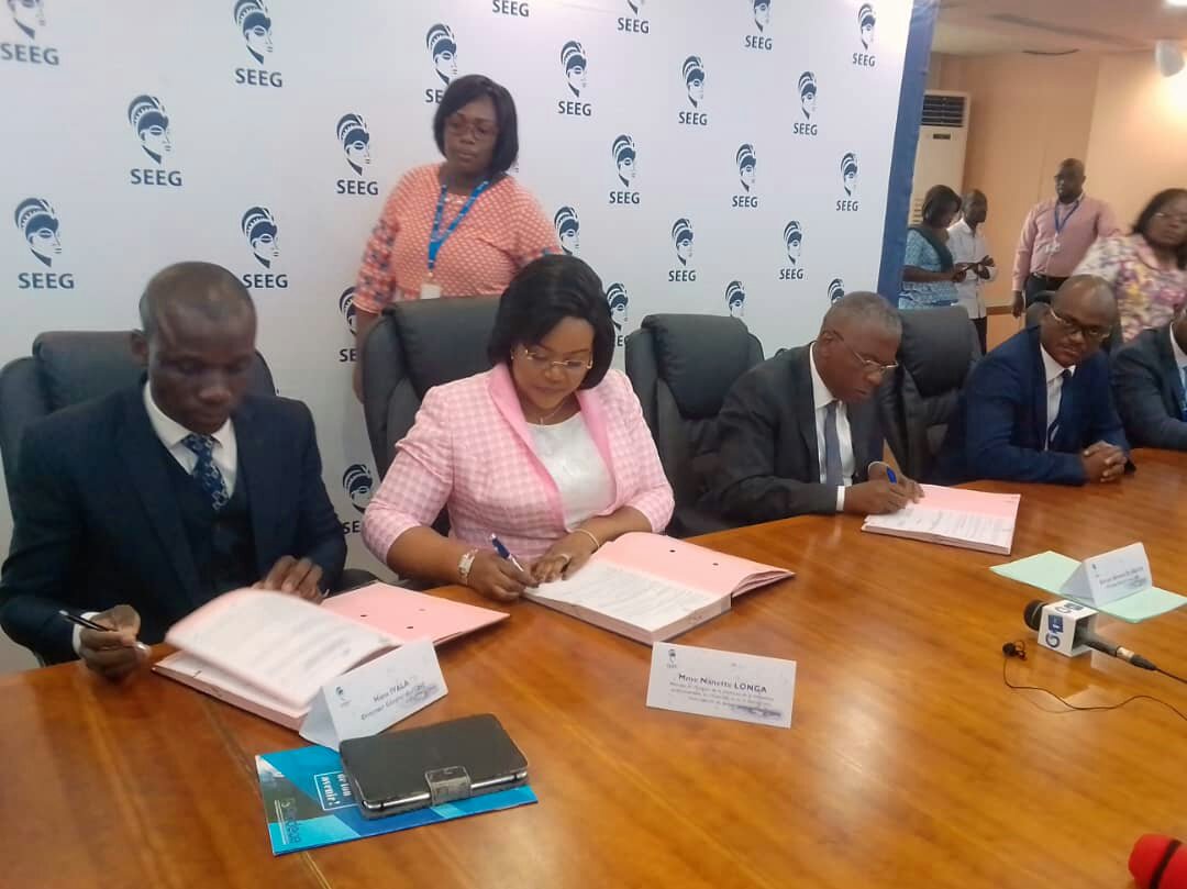 Ce 08 mai 2019, la SEEG en partenariat avec L’ONE, et le Ministère de L’emploi de la Jeunesse de la Formation professionnelle, de l’Insertion et de la Réinsertion, a organisé dans son siège social de Libreville, la cérémonie Officielle de signature d’une convention cadre de partenariat《Apprentissage Jeunesse》avec ses partenaires si dessus cités, ceci en présence des Ministres de l’énergie, et celui de la l’emploi, de la jeunesse de la formation Professionnelle de l’insertion et Réinsertion des Directeurs Généraux de la SEEG et de L’ONE.