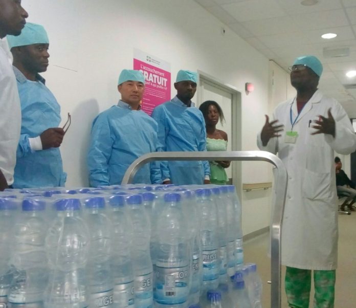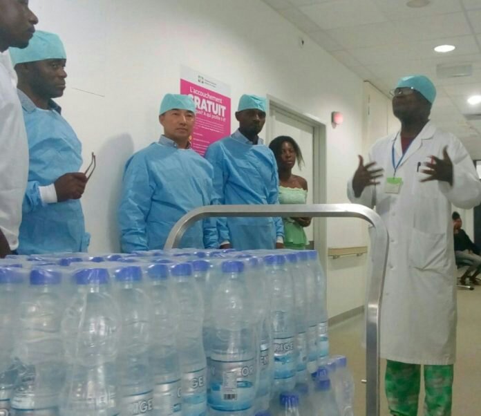 C’est’est le Dr JohnFlorent Mouba qui a reçu la délégation du producteur d’eau minérale ORIGEN en lieu et place du Directeur général du CHUO empêché. C’est donc lui qui a coordonné l’opération de distribution des 58 packs de 0,5 litres, à plus de 20 nourrissons.