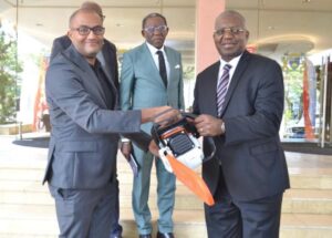 A la suite de l’audience, le DGA de Diesel Gabon a procédé à la remise d’un don de matériel de lutte contre l’insalubrité aux autorités municipales. Un don essentiellement composé de : débroussailleuses, de tronçonneuses et de motos pompes.