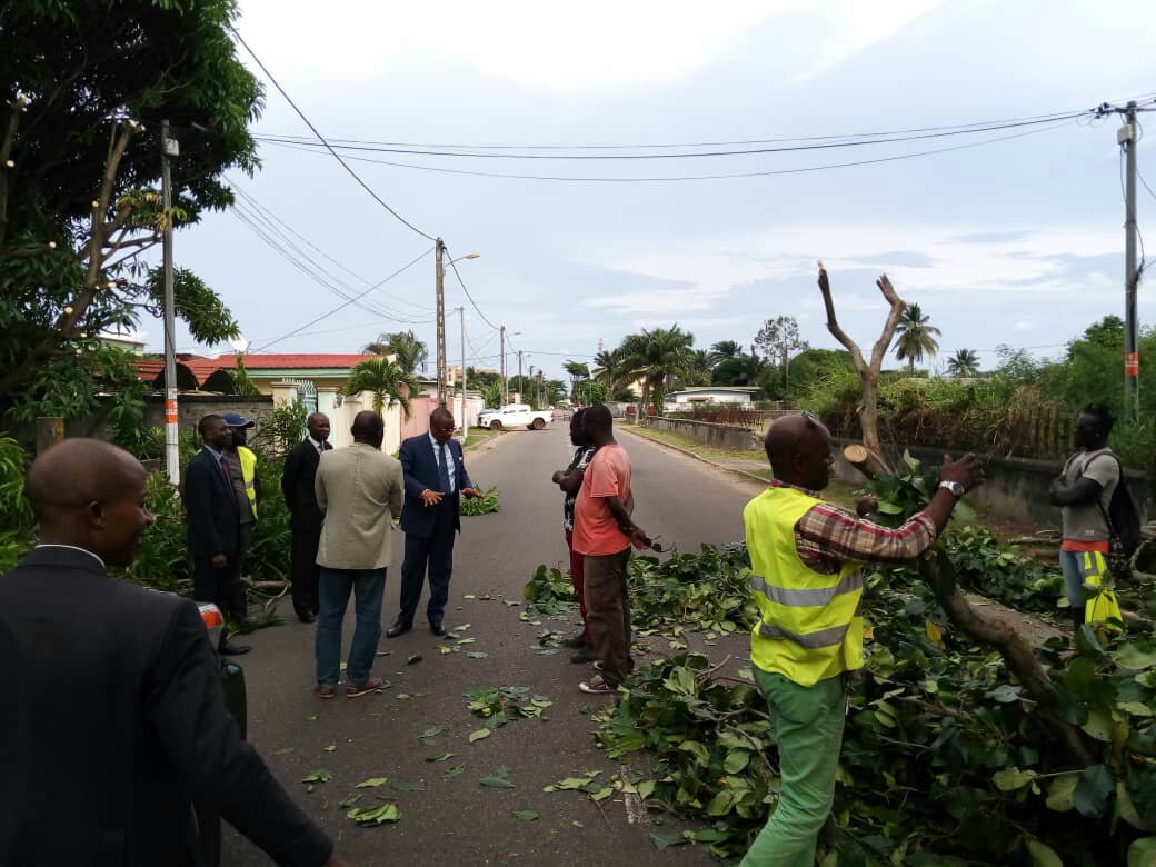 Le 14 mai dernier à la foire municipale de Port-gentil, M le Maire Gabriel Tchango avait sollicité l’implication de tous pour un Port-gentil propre et prospère, l’édile de la ville qui bénéficie déjà de l’adhésion de toutes les forces vives de la ville, a lui même montré la voie cette mi journée en assistant à une opération d’élagage d’arbres dont les branches obstruaient la circulation qui devient de plus en plus dense dans la ville.