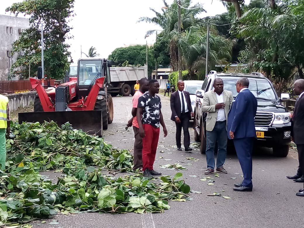 Le 14 mai dernier à la foire municipale de Port-gentil, M le Maire Gabriel Tchango avait sollicité l’implication de tous pour un Port-gentil propre et prospère, l’édile de la ville qui bénéficie déjà de l’adhésion de toutes les forces vives de la ville, a lui même montré la voie cette mi journée en assistant à une opération d’élagage d’arbres dont les branches obstruaient la circulation qui devient de plus en plus dense dans la ville.