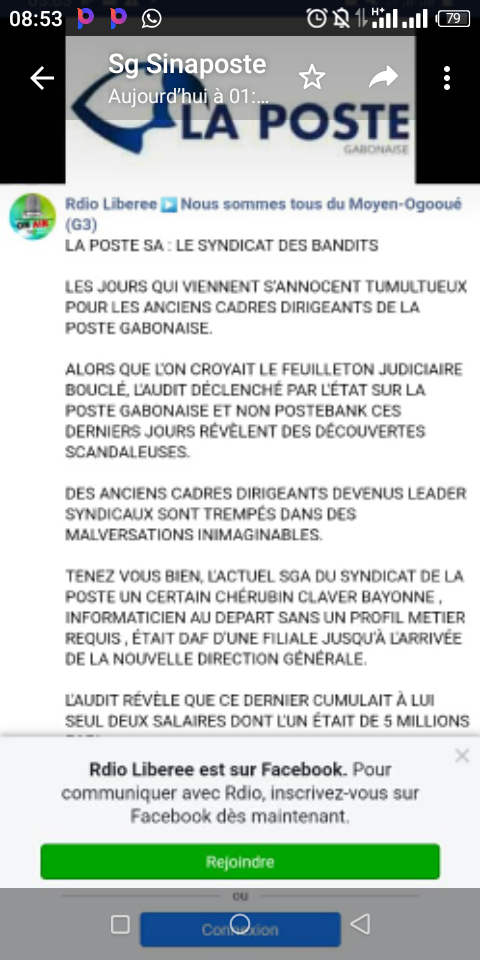 Libreville le 11 juin 2021(Globe Infos). Le Secrétaire général adjoint du SYNAPOSTE Chérubin Claver Bayonne, qui a été victime calomnie émanant de sa direction générale par voie des réseaux sociaux a tenu à donner à l’opinion publique nationale sa version de faits, en étalant au grand jour les insuffisances et le manque de sérieux que fait montre sa direction.