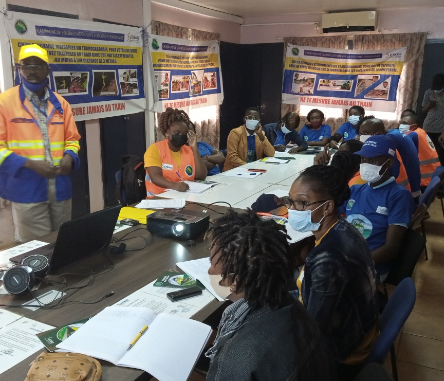 Au total 23 agents ont été formés, parmi lesquels, il y aura 19 agents sensibilisateurs et 04 encadreurs. ceux-ci seront chargés d’inculquer à la population cible la vision et la politique sécuritaire de l’entreprise, en leur expliquant la démarche préventive qui mène à la réduction, sinon à l’éradication des causes d’accidents sur la voie ferrée et aux abords de celle-ci. Cette vision doit être un objectif commun et partagé, construit par un véritable changement des paradigmes de toutes les couches des populations riveraines du Transgabonais.