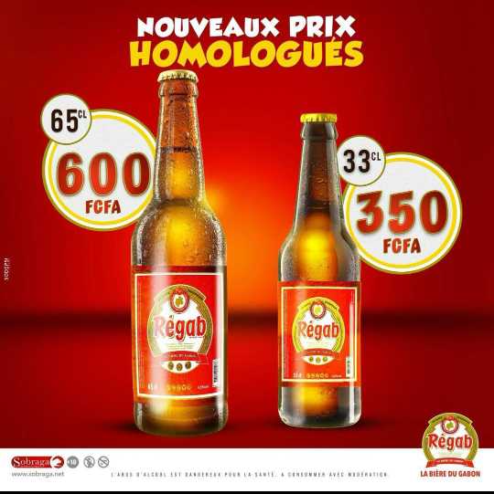La Sobraga informe ses consommateurs qu’elle procède à un réajustement tarifaire ciblé sur les formats Régab 65 cl et 33 cl. Le prix de vente homologué de la bouteille 65cl est fixé à 600 FCFA, et celui de la bouteille 33cl est abaissé à 350 FCFA.