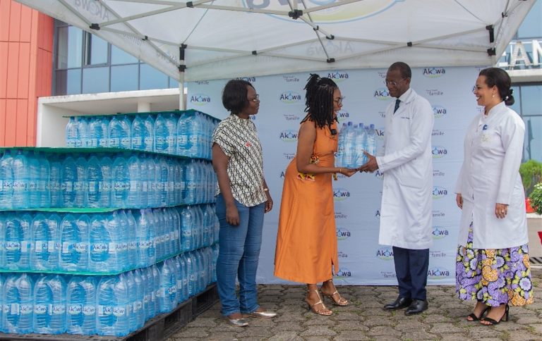 Entre le 14 et le 17 janvier derniers, des centaines de packs d’eau AKEWA de 1,5 litres et de bidons de 10 litres ont été distribués au personnel de santé ainsi qu’aux patients présents dans divers centres hospitaliers. Parmi les bénéficiaires de ce don figurent :